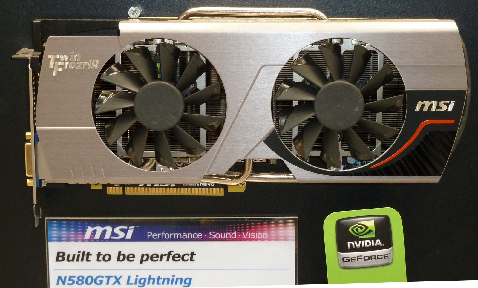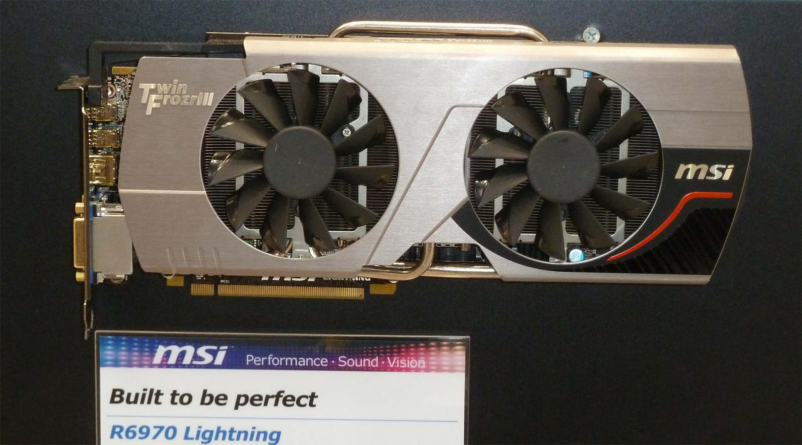 Verder gaat MSI iets meer onderscheid aanbrengen tussen de verschillende uitvoeringen. Zo zijn er de Lightning-versies, die volgeladen zijn met overklokfeatures. Op de foto's hieronder zijn de Lightning-uitvoering van zowel de HD 6970 als de GTX 580 te zien. De verwachting is dat de GTX 580 Lightning records gaat breken en zelfs nog verder kan worden overgeklokt dan de GTX 580 van Asus, die onlangs 1504MHz aantikte.