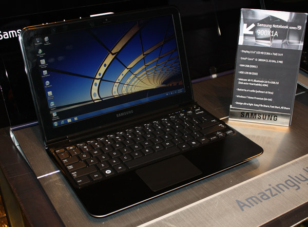 Het scherm van de 900X1A heeft een resolutie van 1366x768 pixels, er is 2GB geheugen aanwezig en de opslagcapaciteit wordt verzorgd door een ssd van 128GB, terwijl de eerste berichten van 64GB spraken. De processor is de Core i3-380UM. Dit is geen Sandy Bridge-model; volgens Samsung zijn de prijzen van de zuinige Sandy Bridge-processors nog zo hoog dat de 900X1A hierdoor te duur zou worden. Het bedrijf wil namelijk rechtstreeks de concurrentie met Apple aangaan en de prijzen dan ook zo dicht mogelijk bij die van de Macbook Air houden. De aanwezigheid van een wat oudere processor is ook de reden dat Samsung besloten heeft het model niet wereldwijd uit te brengen. Zo komt de laptop in eerste instantie ook niet naar Nederland. Mogelijk gaat het bedrijf de 11,6"-laptop op een later tijdstip wel van een Sandy Bridge-chip voorzien en in meer landen uitbrengen.