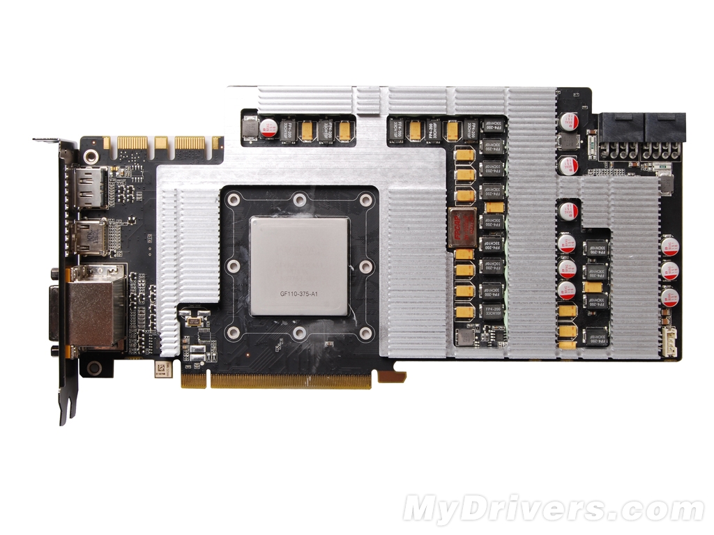 Met de nieuwe GTX 580 mikt Zotac overduidelijk op overklokkers. Normaliter beschikt een GTX 580 over een powercircuit van zes fasen voor de gpu en twee fasen voor het geheugen. De Zotac doet daar een schepje bovenop met zestien fasen voor de gpu en twee fasen voor het geheugen. Om al die fasen kwijt te kunnen kunnen werd het pcb aan de bovenkant uitgebreid. Het powercircuit zou een belasting van 500W aankunnen. Er zijn dan ook twee achtpins pci-e connectors aanwezig, in plaats van een acht- en zespins connector. De verschillende fasen en het geheugen worden gekoeld door een eigen heatsink.