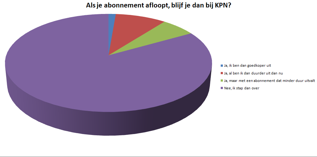 Van de klanten die zeggen te blijven, zouden er veel kiezen voor het goedkoopste abonnement, zo blijkt uit een onderzoek dat Tweakers.net in de afgelopen dagen heeft gedaan onder lezers en volgers op Twitter. In totaal meer dan 800 klanten van KPN en Hi vulden de vragenlijst in, waarin onder meer vragen stonden over het huidige abonnement, de nieuwe abonnementen en het dataverbruik.