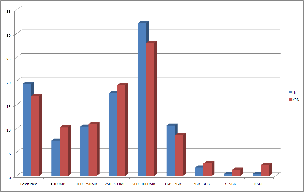 De lezers die de vragenlijst hebben ingevuld, blijken bovengemiddelde verbruikers van data; meer dan 60 procent verbruikt tussen 250MB en 1GB per maand, terwijl het gemiddelde verbruik per klant volgens KPN net onder 200MB ligt. De meeste mensen zeiden tussen 500MB en 1GB te verbruiken. Slechts een enkeling zegt meer dan 2GB per maand te verbruiken.