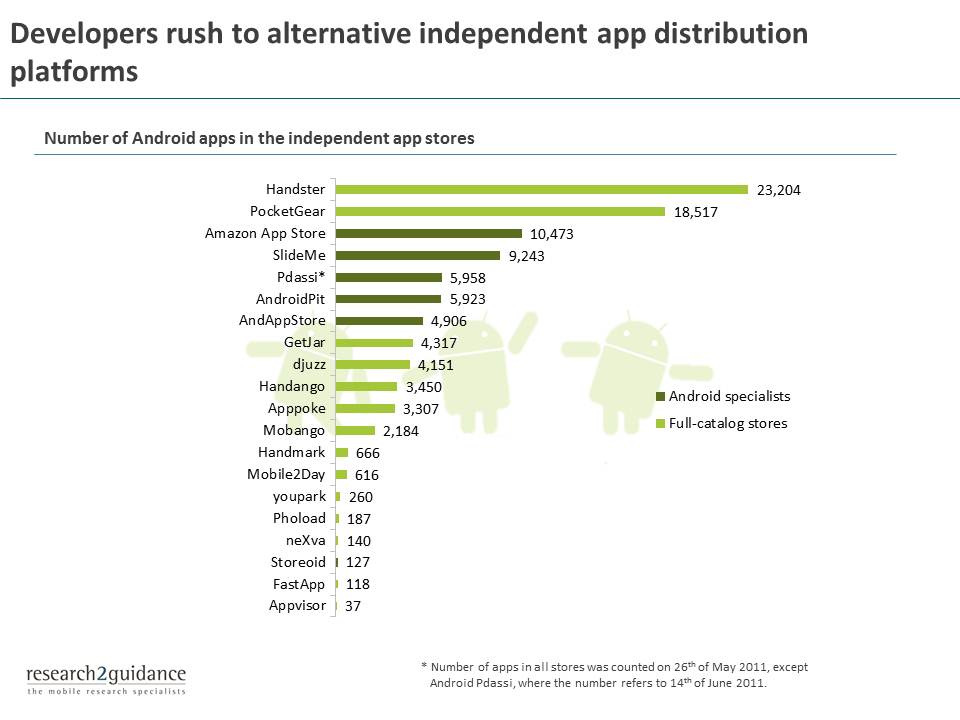 Het Amerikaanse Handster biedt een groot aantal Android-applicaties aan: met ruim 23.000 apps verslaat de website onder meer PocketGear, GetJar en de Appstore van Amazon. Partners van Handster zijn bedrijven als Alcatel-Lucent, Ericsson, LG en Huawei.