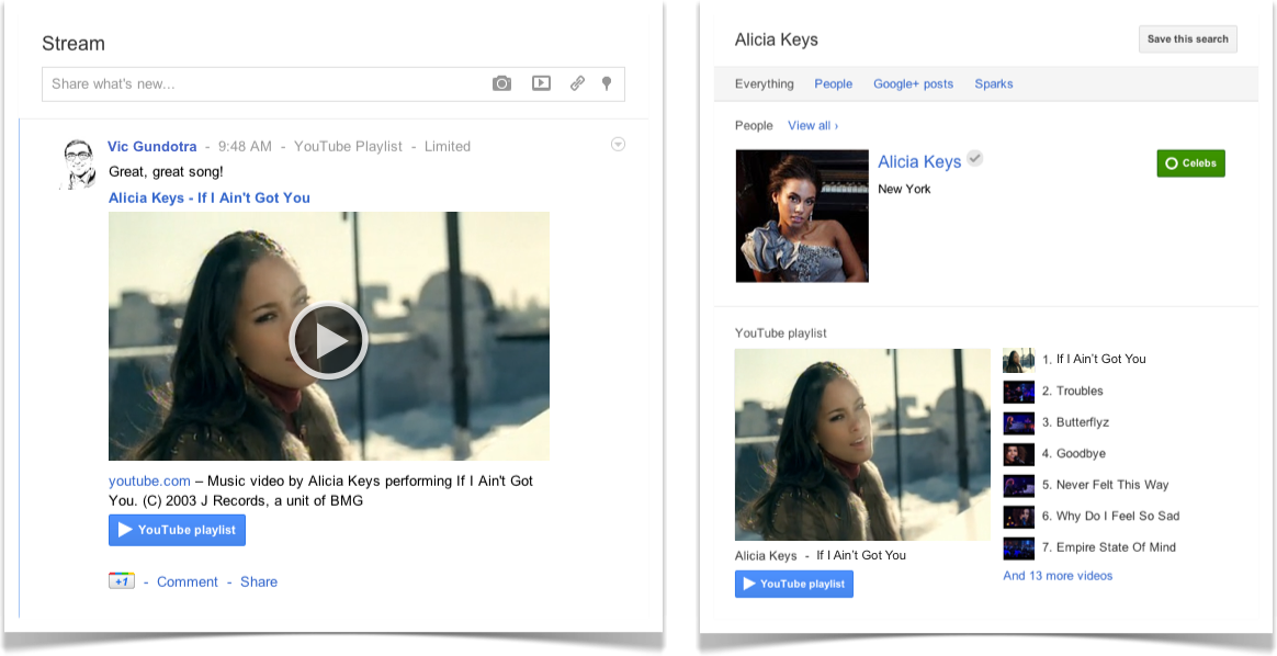 Google heeft bekendgemaakt dat gebruikers Youtube-video's af kunnen spelen op de sociale-netwerksite Google+. Daarnaast komt de internetgigant met plugins voor de Chrome-browser, waarmee website-url's direct op de Plus-site zijn te delen.