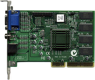 To get a general idea of the comparative 3D speeds of the SiS card and a current hot board like a TNT2 Ultra or Voodoo 3 (don't even START thinking GeForce), visualise, in your mind, Stonehenge. That's the hot board's results. Now visualise a housebrick standing next to each stone. There you go. [break] LOL. En over de 2D performance: [/break] I'm prone to saying that every card on the shelves these days has more than adequate 2D speed, and you can't tell the difference. Well, this is the card that proves me wrong; I could tell the difference between this card and one of the much faster ones in normal Windows operations. But only now and then; when dragging out a crop box in Photoshop, for instance, the SiS is quite sluggish as it struggles to draw all of those "ants" crawling around the edge of the selection area. It's still not horrible to use, but the difference is marked.