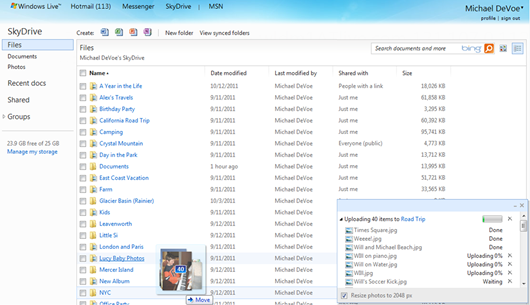 Microsoft heeft zijn cloudopslagdienst Skydrive van nieuwe features voorzien. Het is nu mogelijk om tegelijk met anderen online aan hetzelfde document te werken. Ook is de integratie met sociale netwerken onder handen genomen.
