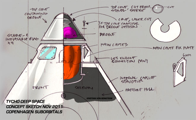 De twee bouwden van 2008 tot 2010 een eenmansruimtevoertuig, de Tycho Brahe-1, waarin de astronaut zijn reis in een langwerpige koker moet maken. De eveneens naar de Deense astronoom Tycho Brahe vernoemde Tycho Deep Space is met zijn diameter van 2 meter een stuk ruimer en zou zelfs aan twee personen ruimte bieden. Het model lijkt op de Apollo die de NASA gebruikte om de mens naar de maan te brengen.