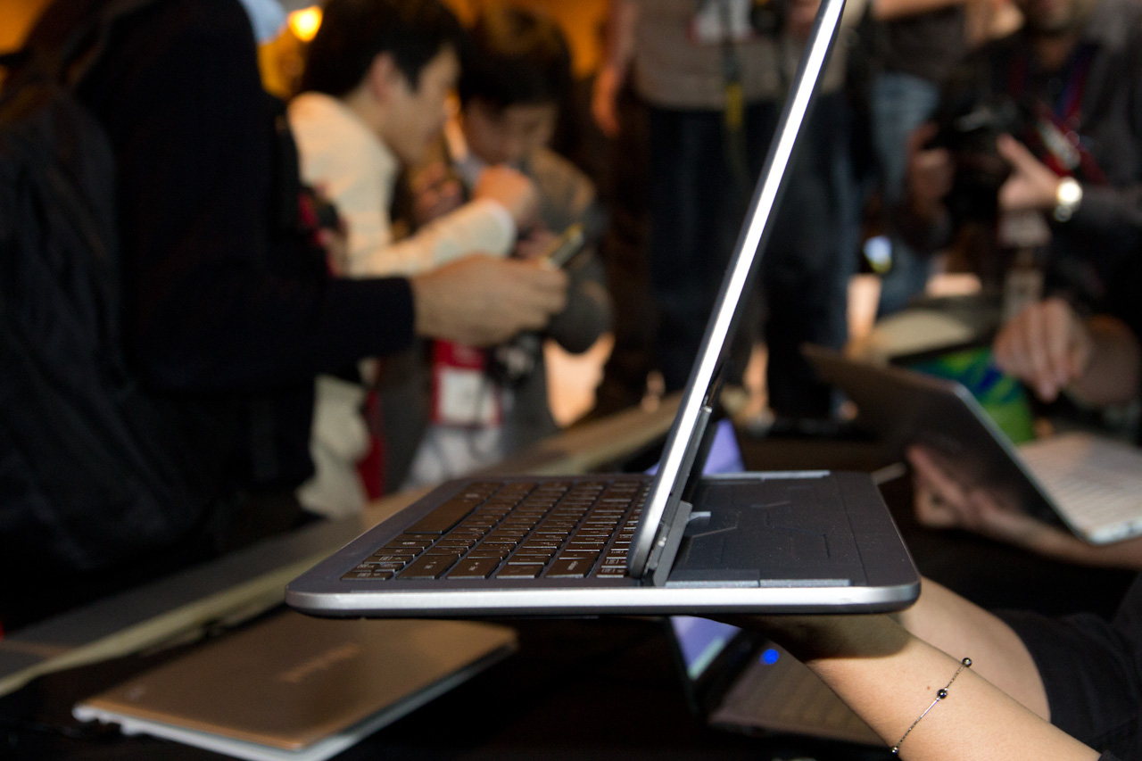 Lenovo toonde in januari al zijn Yoga-ultrabook, die over een compleet omklapbaar touchscreen beschikt. Ook Intel toonde enkele alternatieve concepten met schuifbare mechanismen en volledig omklapbare schermen. De verwachting is echter dat de meeste fabrikanten voor constructies kiezen waarbij de schermen roteren rond een as en vervolgens zijn om te klappen.
