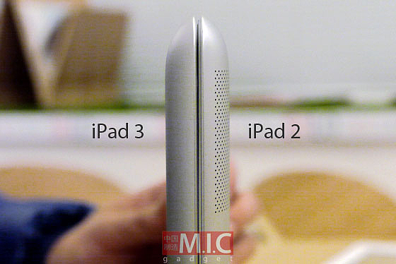 De onderdelen van MIC Gadget bevestigen dat de opvolger van de iPad 2 iets dikker is dan zijn voorganger, zo'n 0,8mm. Dat zou onder meer gedaan zijn om een betere camera te huisvesten. Dankzij de meer afgeronde randen voelt hij volgens de blog niet dikker dan de iPad 2.