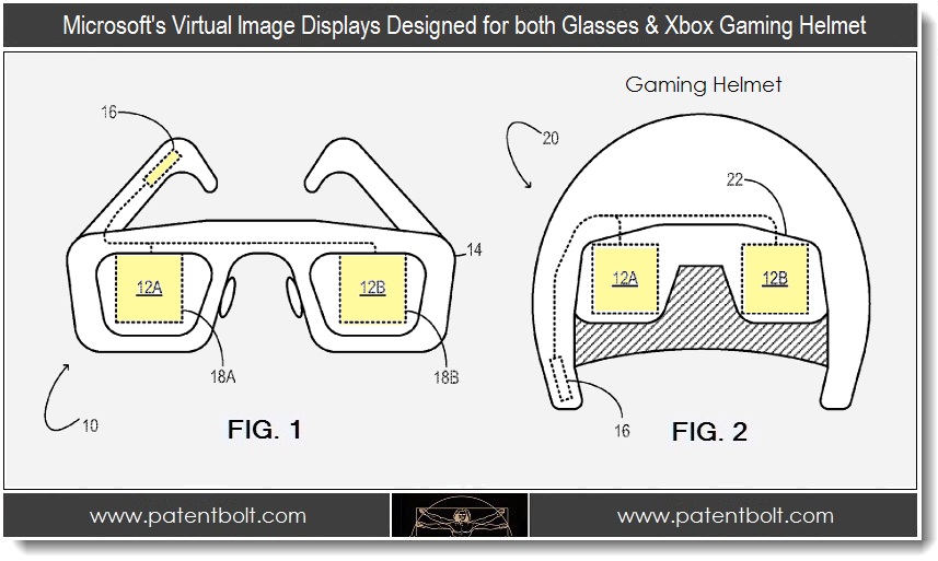 Website PatentBolt ontdekte dat Microsoft al in 2010 patent heeft aangevraagd op een bril die is bedoeld voor gamen. De bril kan eventueel ook ingebouwd worden in een helm. De helm is volgens de aanvraag bedoeld voor het spelen van Xbox-games, de bril voor gebruik met smartphones en toekomstige apparaten.