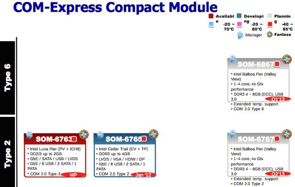 In een dia die op de site stond van het bedrijf Advantech, fabrikant van embedded apparatuur, staat een roadmap van Intel voor Atoms die tot aan het eerste kwartaal van 2013 moeten verschijnen. In die periode moet het Atom Balboa Pier-platform verschijnen. Intel noemt de system-on-a-chip Valley View en het bedrijf zou de chip op 22nm produceren. Eerder was al bekend dat de komende Atoms op de Silvermont-architectuur gebaseerd worden; de chips krijgen Intels '3d-transistors' en waarschijnlijk out-of-order-verwerking.