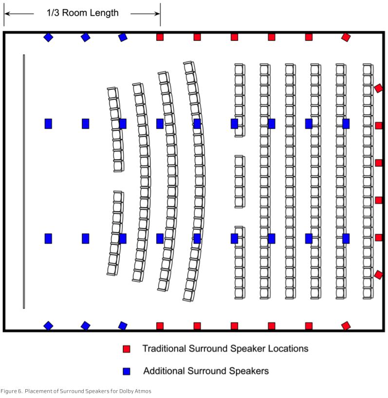 Volgens Dolby maakt Atmos het dankzij een flink aantal extra luidsprekers die in een bioscoopzaal geplaatst moeten worden, mogelijk om bepaalde geluiden beter te positioneren. Ook zou een realistischer 'verplaatsingseffect' gecreëerd kunnen worden door middel van panning. De extra speakers zouden vooral aan de muren en het plafond geplaatst moeten worden.