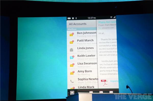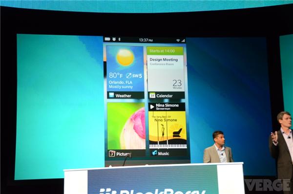 Tijdens de presentatie van het nieuwe OS werd een prototype van een BlackBerry 10-smartphone getoond door RIM-ceo Thorsten Heins. Bij de demonstratie werd duidelijk dat op het homescreen van het nieuwe besturingssysteem vier widgets geplaatst kunnen worden. Notificaties bevinden zich aan de rechterkant van het scherm en worden met een swipebeweging tevoorschijn gehaald.