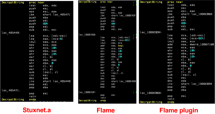 Stuxnet gebruikte de gedeelde code tot 2010; daarna is deze verwijderd en vervangen door een nieuwe module, die gebruikmaakte van nieuwe kwetsbaarheden in software. Sindsdien hebben beide teams los van elkaar gewerkt, denkt Kaspersky. Bovendien denkt Kaspersky dat Flame al langer in ontwikkeling is dan Stuxnet en varianten op dat virus, zoals DuQu.