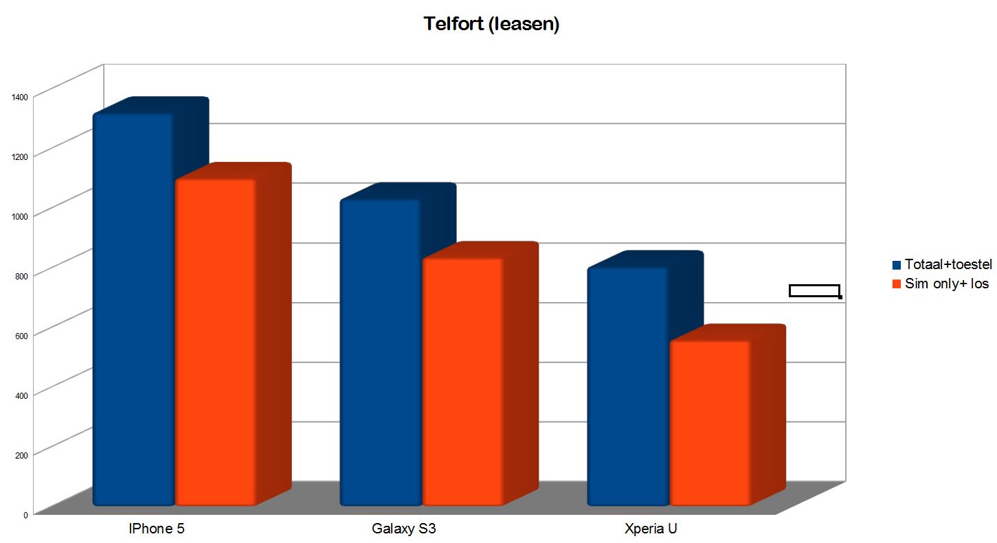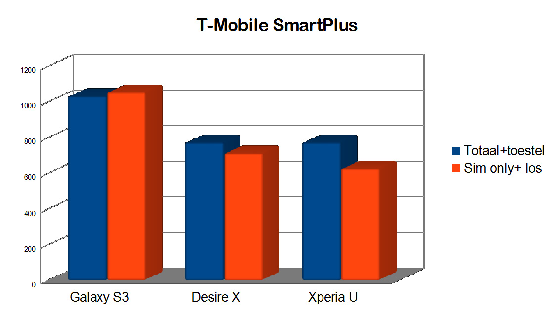 Het verschil valt bijvoorbeeld erg op bij T-Mobile, waar een klant met een Smart Plus-abonnement met een Xperia U 145 euro minder betaalt met een sim-only-variant en los toestel. Met iSmart is het verschil voor dure toestellen het kleinst; voor een iPhone 5 is het verschil iets meer dan 100 euro, bij een Xperia U loopt dat op tot 368 euro.
