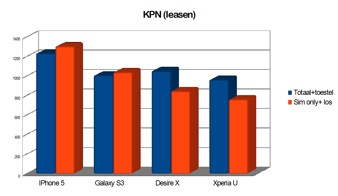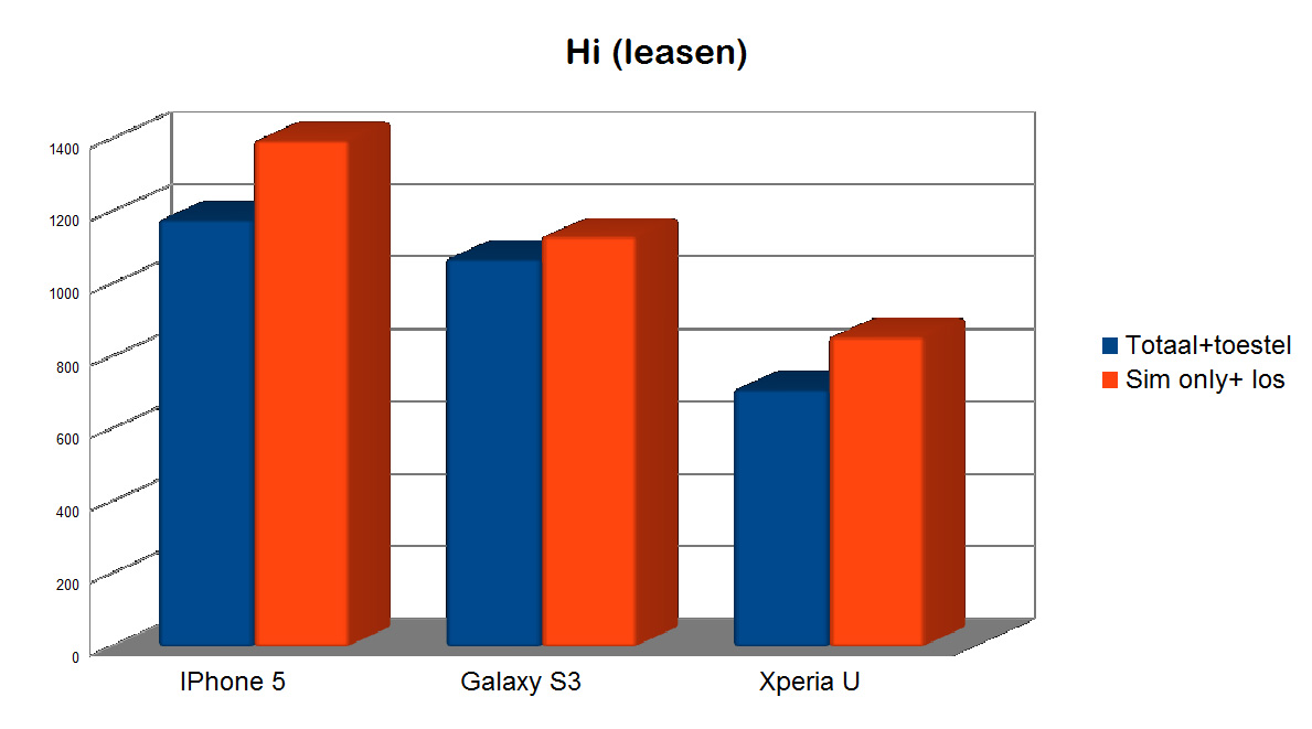 Dat Hi-klanten met leasen goedkoper uit zijn, komt vooral door de relatief hoge prijs van het sim-only-abonnement. Bij KPN is de leaseconstructie met een duur toestel iets goedkoper, maar de restwaarde van het toestel na twee jaar maakt dat het wellicht toch voordeliger is om een toestel los te kopen. Bij Telfort is een sim-only-klant altijd goedkoper uit.