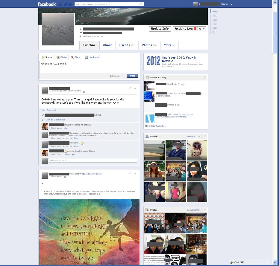 Momenteel bestaat de Timeline-pagina onder de coverfoto uit twee kolommen, waarvan de rechterkolom bedoeld is voor vrienden, foto's, activiteiten en een About-pagina. In het nieuwe ontwerp staat die informatie niet alleen in de rechterkolom, maar zijn er tabbladen bijgekomen om snel bij die informatie te komen.