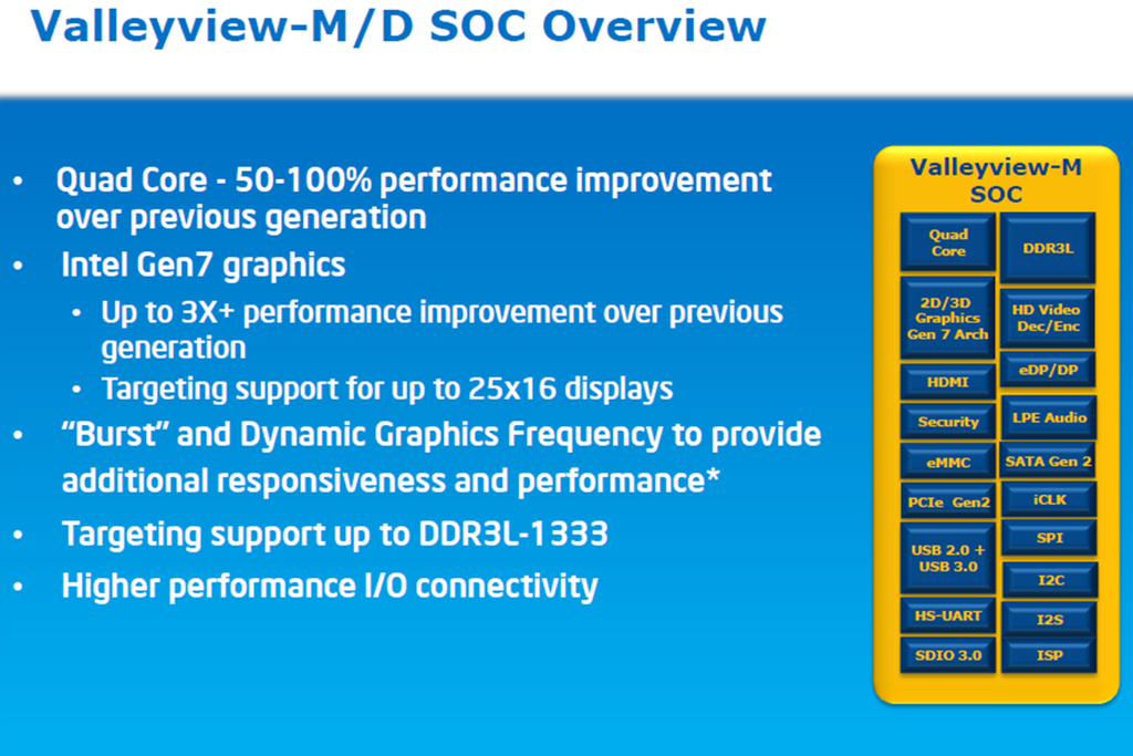 Een Duitse website heeft een presentatie online gezet waarin Intel uitgebreid ingaat op details van het Bay Trail-platform. Dat zuinige platform met Atom-socs zou pas in 2014 verschijnen, maar de presentatie moet fabrikanten informeren over Bay Trail.