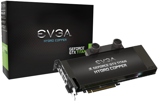 EVGA heeft in tegenstelling tot de concurrent wel verschillende versies van de Titan aangekondigd. Naast de standaarduitvoering, die hetzelfde lijkt te zijn als de kaarten van de concurrenten, is er ook de Superclocked-uitvoering, die door de fabriek overgeklokt is. Daarnaast heeft EVGA de SC 'Hydro Copper'-editie getoond, die uitgevoerd wordt met een waterkoelblok van Swiftech. EVGA heeft de snelheden van de SC-editie nog niet bekend gemaakt.