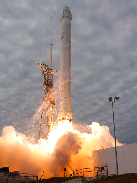 Na een geslaagde lancering, vrijdagavond, kreeg het private vrachtruimteschip Dragon van SpaceX te kampen met problemen met de raketmotoren. De technici van het bedrijf wisten de problemen te overwinnen waarna de koers naar het ISS hervat kon worden.
