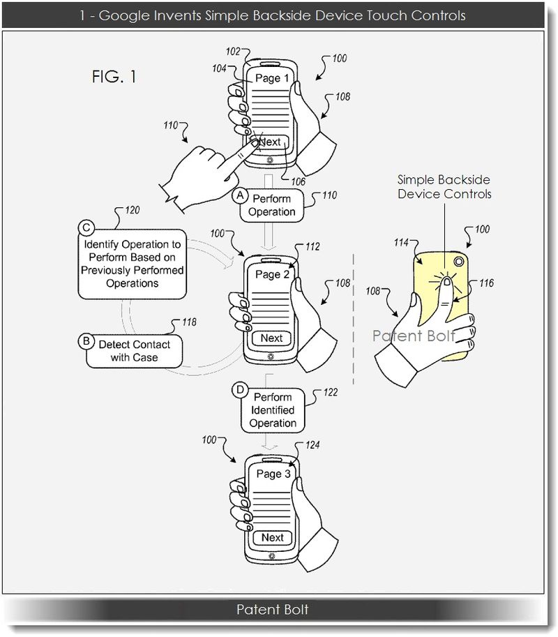 Google heeft patent aangevraagd op een technologie die het mogelijk zou moeten maken om een smartphone via de achterkant te bedienen. Daarmee zouden simpele vormen van bediening, zoals het omslaan van een pagina van een e-book, gemakkelijker worden.