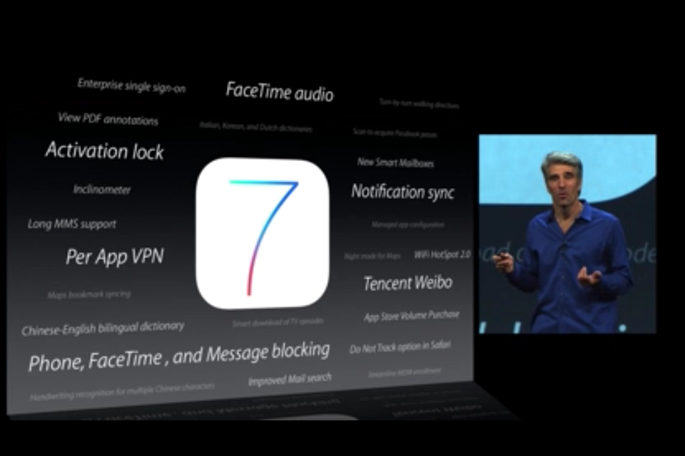 Apple heeft op zijn ontwikkelaarsconferentie WWDC iOS 7 gepresenteerd. De nieuwe versie van het besturingssysteem voor onder meer iPhones en iPads heeft een nieuw ontwerp en nieuwe features, waaronder een nieuw lockscreen en AirDrop.