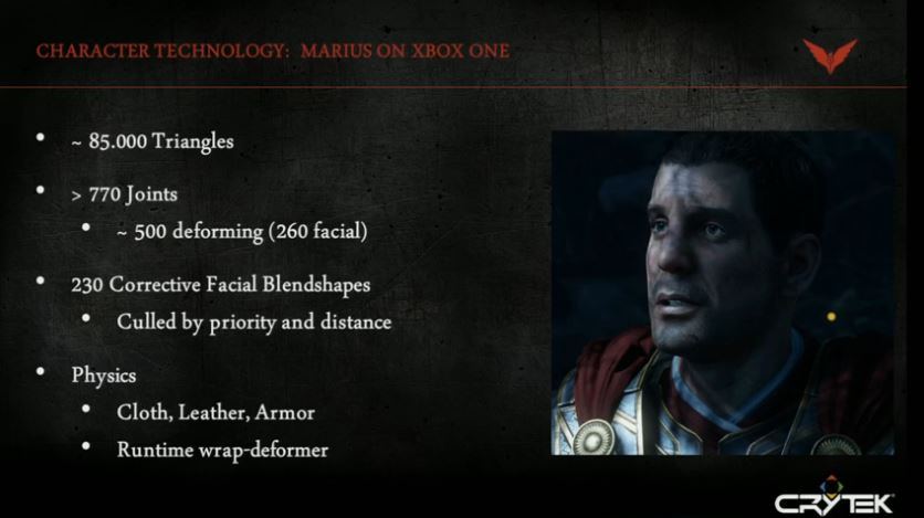 De bevestiging komt vlak na het nieuws dat het aantal driehoeken niet het enige is waar de game op zal inleveren. Ryse zal niet native in 1080p te spelen zijn, maar zal blijven steken op 900p, zo maakte de ceo bekend in een interview met VentureBeat. Nu Ryse in 900p wordt uitgevoerd, blijft alleen Forza 5 als native 1080p-game voor de Xbox One over.