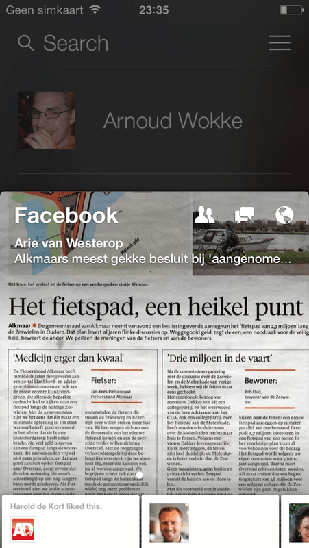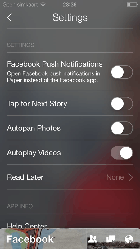 Groot nadeel is dat de interface verre van intuïtief aanvoelt. Facebook heeft niet voor niets zoveel aanwijzingen voor de bediening ingebouwd. Gebruikers moeten die aanwijzingen opvolgen en ze blijven onthouden, want anders is de app niet te bedienen. Omdat de veegbewegingen afwijken van de bewegingen die standaard zijn in iOS 7 - van links naar rechts vegen voor terug, omhoog vegen om te sluiten in bijvoorbeeld het menu om van apps te switchen - moeten gebruikers voor alleen deze app specifieke 'gestures' onthouden.
