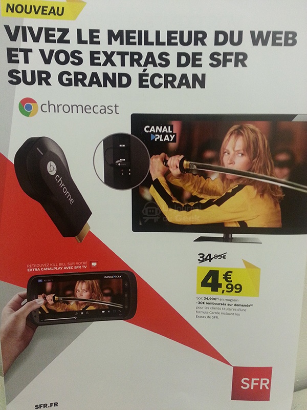 Een Frans blog heeft een foto van een advertentie in een magazine online gezet waarin staat dat provider SFR de hdmi-dongle Chromecast aan klanten gaat verkopen voor 4,99 euro. Het zou voor het eerst zijn dat een provider de Google-dongle in het assortiment zou opnemen.