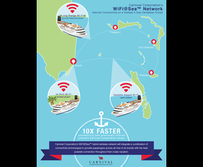 Passagiers zouden een snellere, stabielere en krachtigere wifi-verbinding op zee krijgen, zo meldt Carnival Corporation. De cruiseorganisator beweert via zijn WiFi@Sea-technologie internetsnelheden te behalen die grofweg tien keer zo hoog zijn als de huidige wifi-verbindingen die op cruiseschepen worden aangeboden. Cijfers die een dergelijke bewering onderbouwen, noemt het bedrijf echter niet. Er wordt gemeld dat antennes op land langs drukbevaren cruiseroutes worden geplaatst en daarnaast zou gebruik worden gemaakt van bepaalde satellietinstallaties.