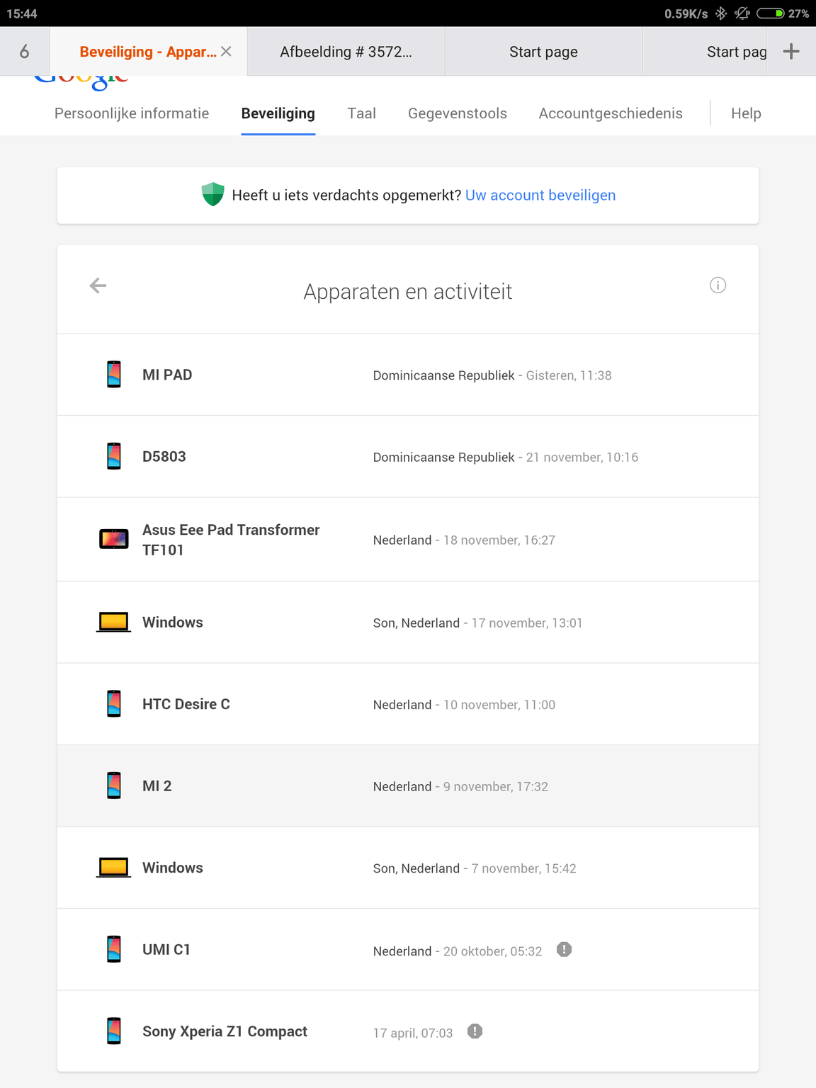 De pagina 'Apparaten en activiteit' biedt een overzicht van alle apparaten die de afgelopen 28 dagen zijn verbonden met een specifiek account of er momenteel mee verbonden zijn. Daarin maakt de pagina onderscheid in desktops, laptops, tablets en telefoons.