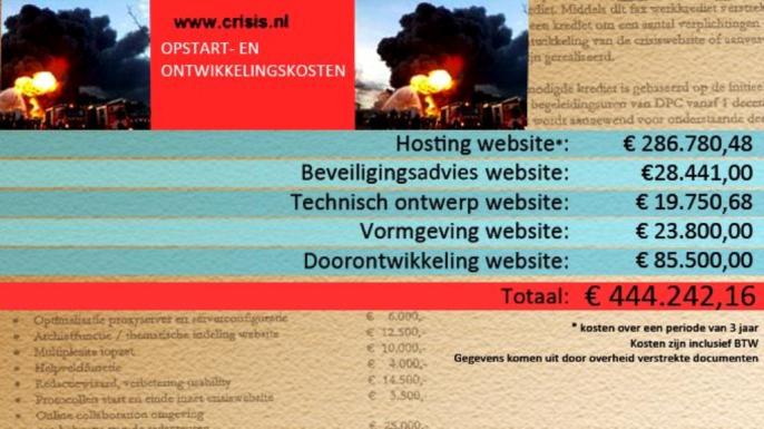 De huidige website van Crisis.nl heeft in de eerste drie jaar van zijn bestaan bijna een half miljoen euro gekost. Welke kosten na die periode nog zijn gemaakt, lijkt in nevelen gehuld. Dit blijkt uit interne stukken van het ministerie, waar NOS op 3 de hand op wist te leggen.