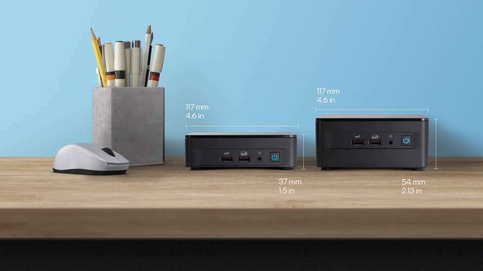 Ook zijn er drie USB 3.2-poorten, een USB-A-poort en twee HDMI 2.1-aansluitingen aanwezig in alle modellen en hebben enkele sku's twee Thunderbolt 4-poorten. Alle uitvoeringen beschikken over een ethernetaansluiting en Wi-Fi 6E, al wordt voor dat laatste in het geval van de non-vPro-modellen wel een M.2 2242-slot bezet. Verder kunnen gebruikers kiezen uit een Tall- of een Slim-formaat. De kleine varianten hebben alleen ruimte voor een M.2 2280-ssd. De grote uitvoeringen hebben daarnaast ruimte voor een 2,5"-opslagschijf.