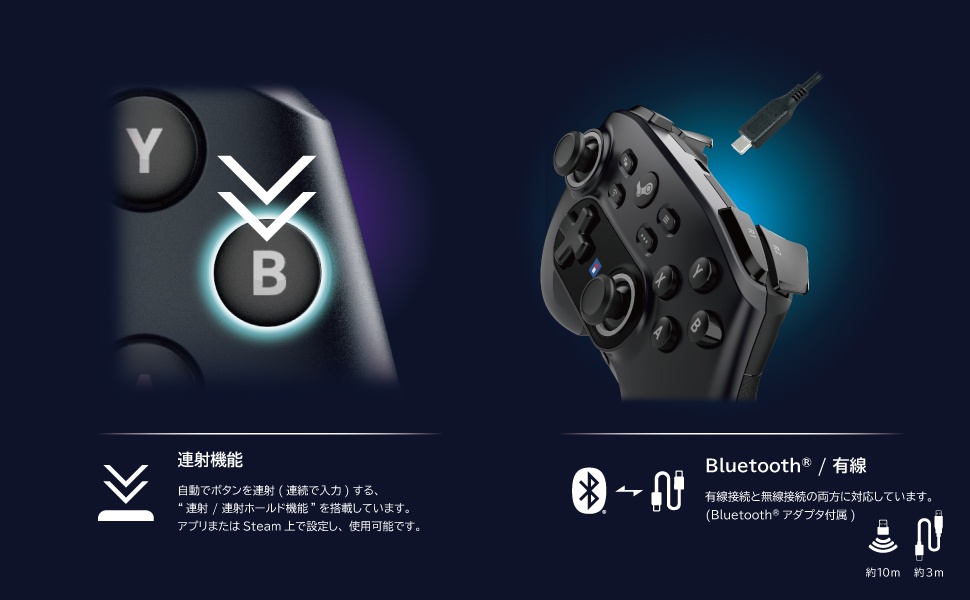 De Horipad heeft een knoppenlay-out die grotendeels overeenkomt met die van Xbox-controllers. De gamecontroller heeft naast de gebruikelijke joysticks, knoppen en triggers daarentegen nog twee extra menuknoppen in het midden en vier programmeerbare knoppen. Deze knoppen zitten in paren respectievelijk aan de onder- en achterkant van de controller. Gebruikers kunnen het apparaat via bluetooth of met een USB-C-kabel met een pc of Steam Deck verbinden .