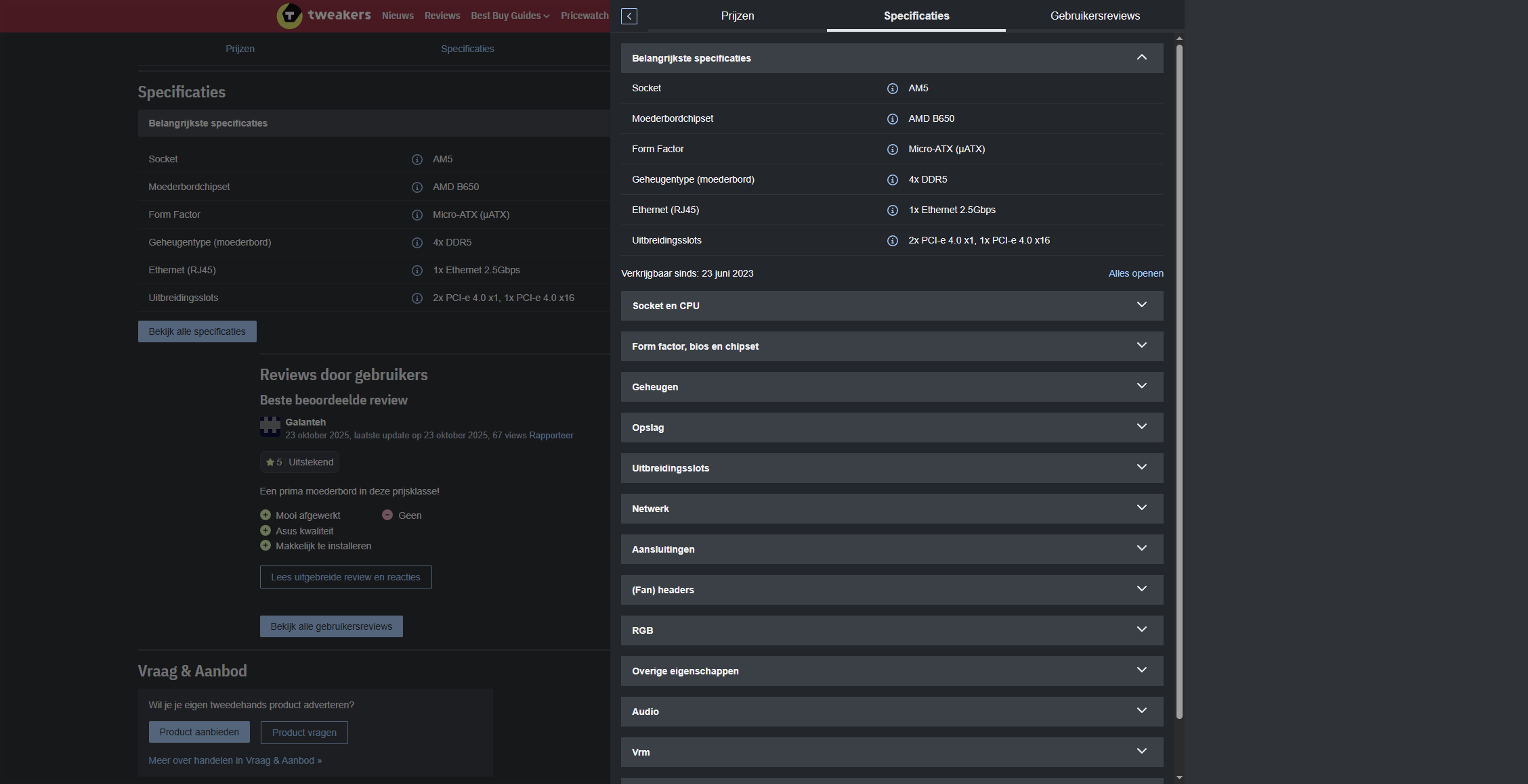 Op de productdetailpagina vind je nu alle belangrijke informatie van het product, zodat je je in één oogopslag kunt oriënteren op alle informatie die we over dit product beschikbaar hebben. Mogelijk is dit zelfs al voldoende informatie en ben je hiermee al geholpen. De detailinformatie verplaatsen we naar een modal op de pagina zelf. Op mobiel opent dit fullscreen en op grotere schermen zal dit vanaf rechts openen. In deze detailinformatie kun je alles terugvinden wat we op Tweakers hebben over het product.