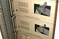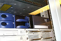 Hoewel al meer dan een week geleden, kan ik het niet laten om nog ff deze pics te posten van de geheugen upgrade aan de twee t.net servers bij VuurWerk. Helaas duurde de upgrade wat langer dan gepland. Vanwege een file kwamen ik en Floris veel te laat in Haarlem en toen uiteindelijk het NOC van VuurWerk gevonden was, bleek dat de plaatsing van een derde reep in Athena onmogelijk werd gemaakt door de onderste SCSI hotswap bay. Na een uurtje klungelen met de drive bays en een rebelerende SCSI terminator lukte het ons uiteindelijk om Athena online te krijgen met 640Meg geheugen en een werkend SoftRAID array (die raakt over de zeik als schijven opeens op een andere SCSI connector zitten). De upgrade van Appie ging gelukkig precies volgens plan: rack eruit, deksel open, DIMM erin en gassen maar.