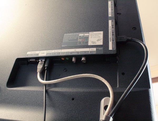 Een brede keur aan in- en uitgangen is aanwezig om beeld en geluid het toestel in en uit te krijgen. Naast de vier HDMI-poorten beschikt de tv over een optische geluidsuitgang en diverse analoge aansluitingen.
