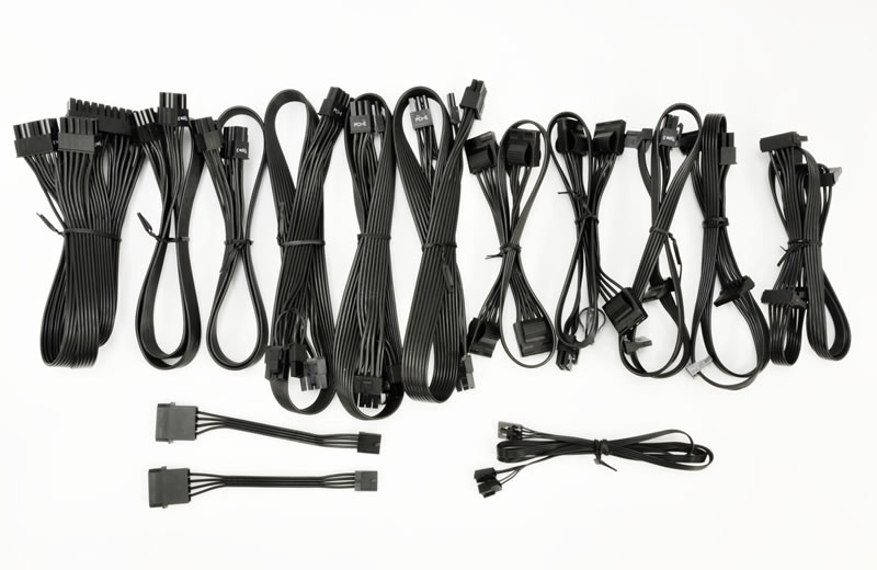 Als extra accessoire wordt er een standaard AC stroomsnoer meegeleverd, 5 kleine tie-wraps en 4 schroefjes om de voeding vast te zetten in de behuizing. De kabels worden nog bij elkaar gehouden door twee zwarte stukjes klittenband.