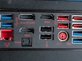 Voorop de kast zitten 2 USB2.0poorten, 2 USB3.0poorten en 2 audiojacks. Hiermee heb je meer dan genoeg aansluitmogelijkheden voor alles wat je op een gamesysteem zou willen aansluiten. Verder heb je hier natuurlijk de powerbutton zitten, maar ook de OCGenie knop, die gebruikt kan worden om het systeem met 1 druk op te knop te overclocken, waar ik later in de review nog op terugkom.