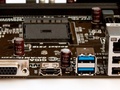 Naast de AM1 socket zitten 2 DDR3-sloten voor het geheugen, en tussen het PCIe x4-slot en de socket zijn 2 SATA 6Gbpspoorten aanwezig.