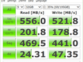 Het moment suprème; opstarten met de nieuwe schijf. Jemig, wat is dat vlot ten opzichte van de reguliere harde schijf. Ik heb even Crystal Mark gedraaid en de waardes zien er goed uit als ik kijk naar wat ik in dit budgetmodel laptop kan verwachten. De schijf is in ieder geval niet meer de traagste schakel bij het gebruik van de laptop.