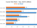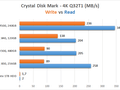 Ook in de Crystal Disk Mark Benchmark zien we dezelfde trend terugkomen.