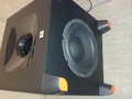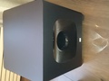 De subwoofer, deze is 10KG zwaar, beschikt over een 8" long excursion driver met achterop instelling voor Crossover, level, en een fase schakelaar.