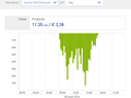 Een onhebbelijkheidje van http://mijn.ithodaalderop.nl is wel dat het elektriciteitsverbruik opgesplitst is in de tarieven. Dus je hebt verbruik in hoog en laag tarief, alsmede opwek in hoog/laag tarief. Zo krijg je niet echt een duidelijk beeld van het verbruik over een hele dag. Je moet dus eigenlijk de onderstaande 3 grafieken in 1 grafiek voorstellen.