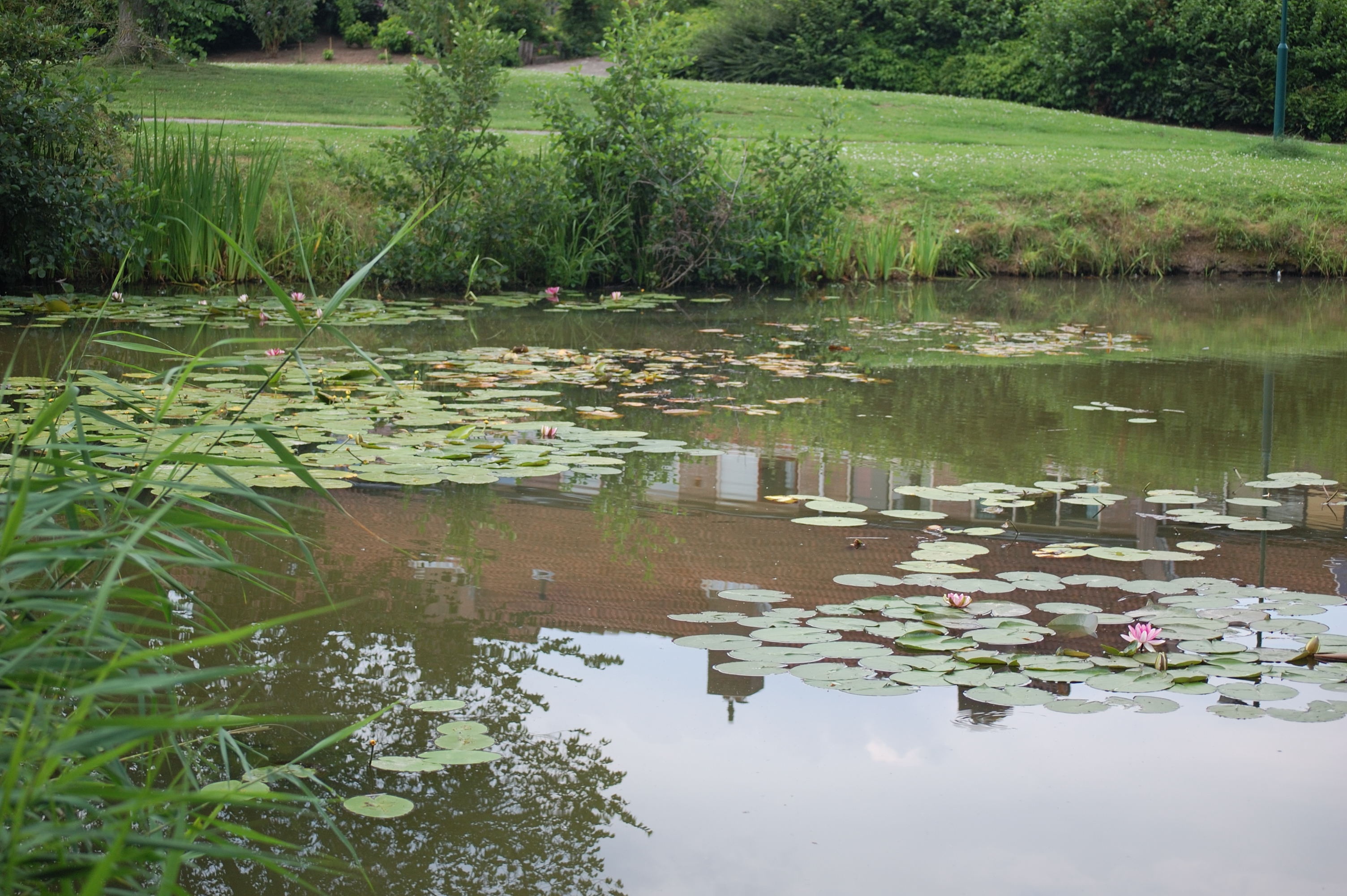 Hier hebben we de achilleshiel van deze lens te pakken. Duidelijk is in de foto van de schoorsteen te zien dat dat in de hoeken niet lukt. Ook bij de foto van de waterlelies zie je dat de lichtopbrengst in het midden hoger is dan aan de kanten. NU schrijft slrgear in zijn review dat dat vooral het geval is bij grote diafragma’s en sterk afneemt (0,1 EV) bij 3 stops onder het kleinste diafragma. Jammer genoeg is de lens niet zo lichtgevoelig, dus het diafragma staat vaak wijd open…..