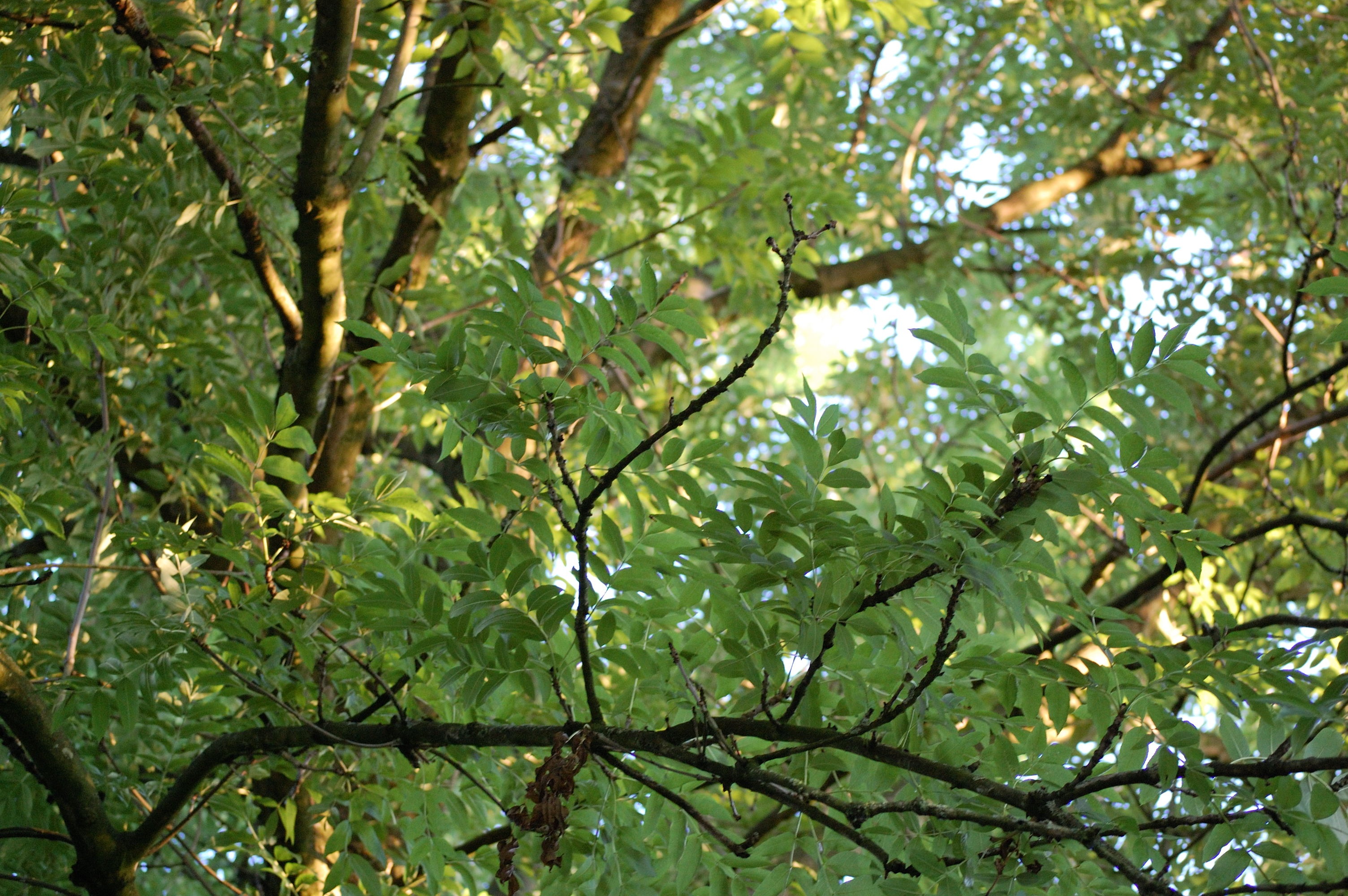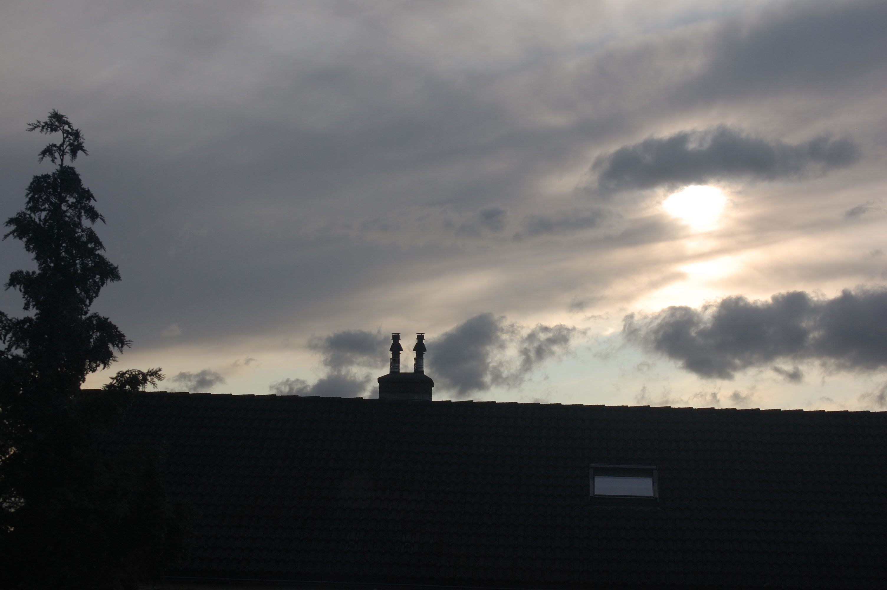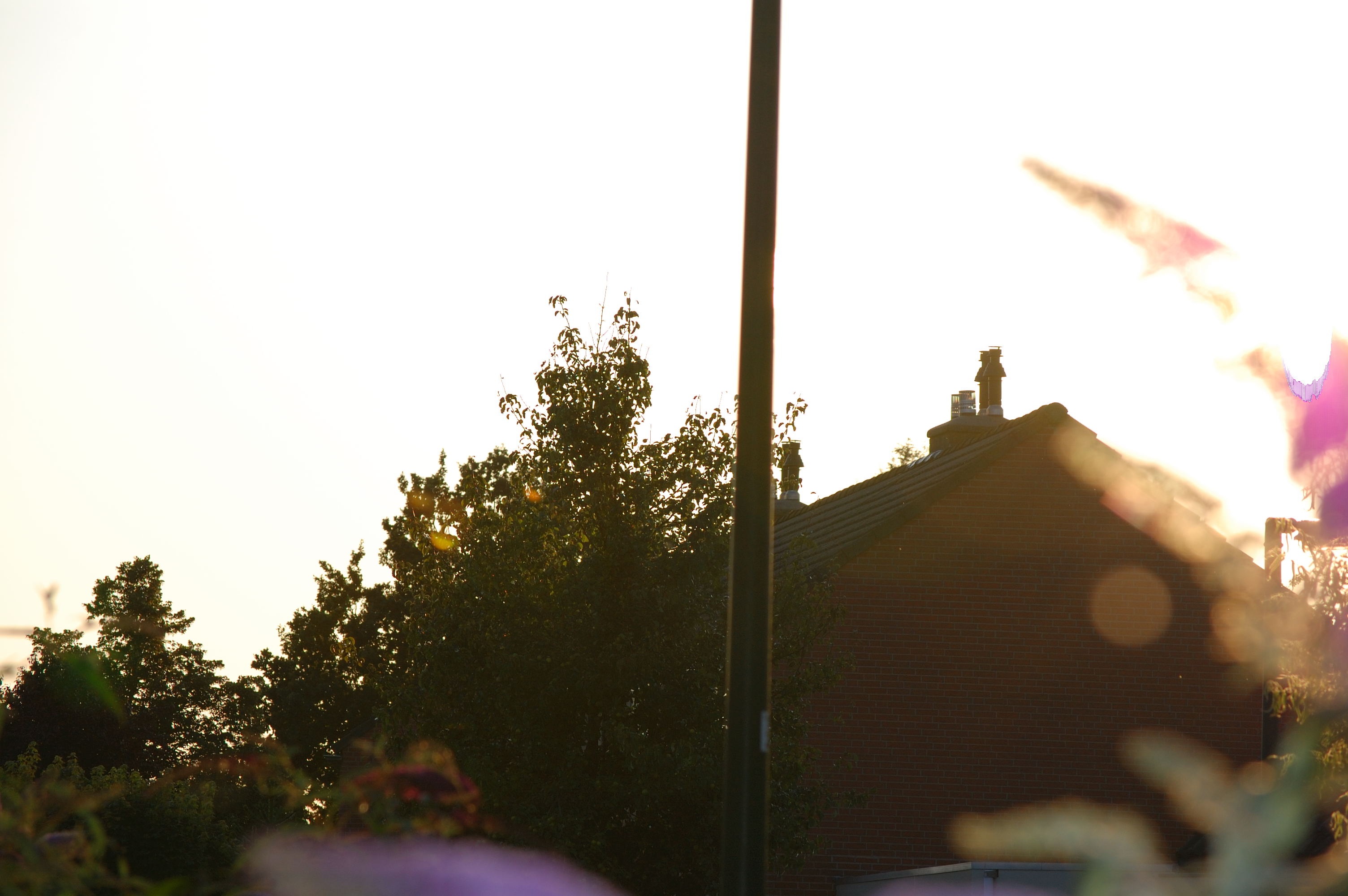 Als je goed kijkt naar de foto met de schoorsteen dan kun je inderdaad waarnemen dat aan de randen de lucht wat paarser gekleurd is dan in het midden. Echter dit zijn minimale afwijkingen. Veels sterker is het zichtbaar bij de foto hieronder waar het zonlicht door de boom heen schijnt.