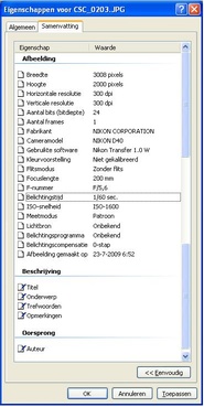 Met de mouse-over functie kunt u de instellingen die bij de foto's gebruikt zijn waarnemen.
