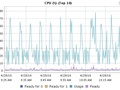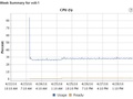 Ga je wat verder inzoomen naar real time gebruik, dan blijken er ook nog fikse pieken van 60-70% in de CPU belasting te zitten. Dat betekent dat ik deze VM ook niet terug kan zetten naar een enkele core, omdat deze pieken dan leiden tot vertraging.