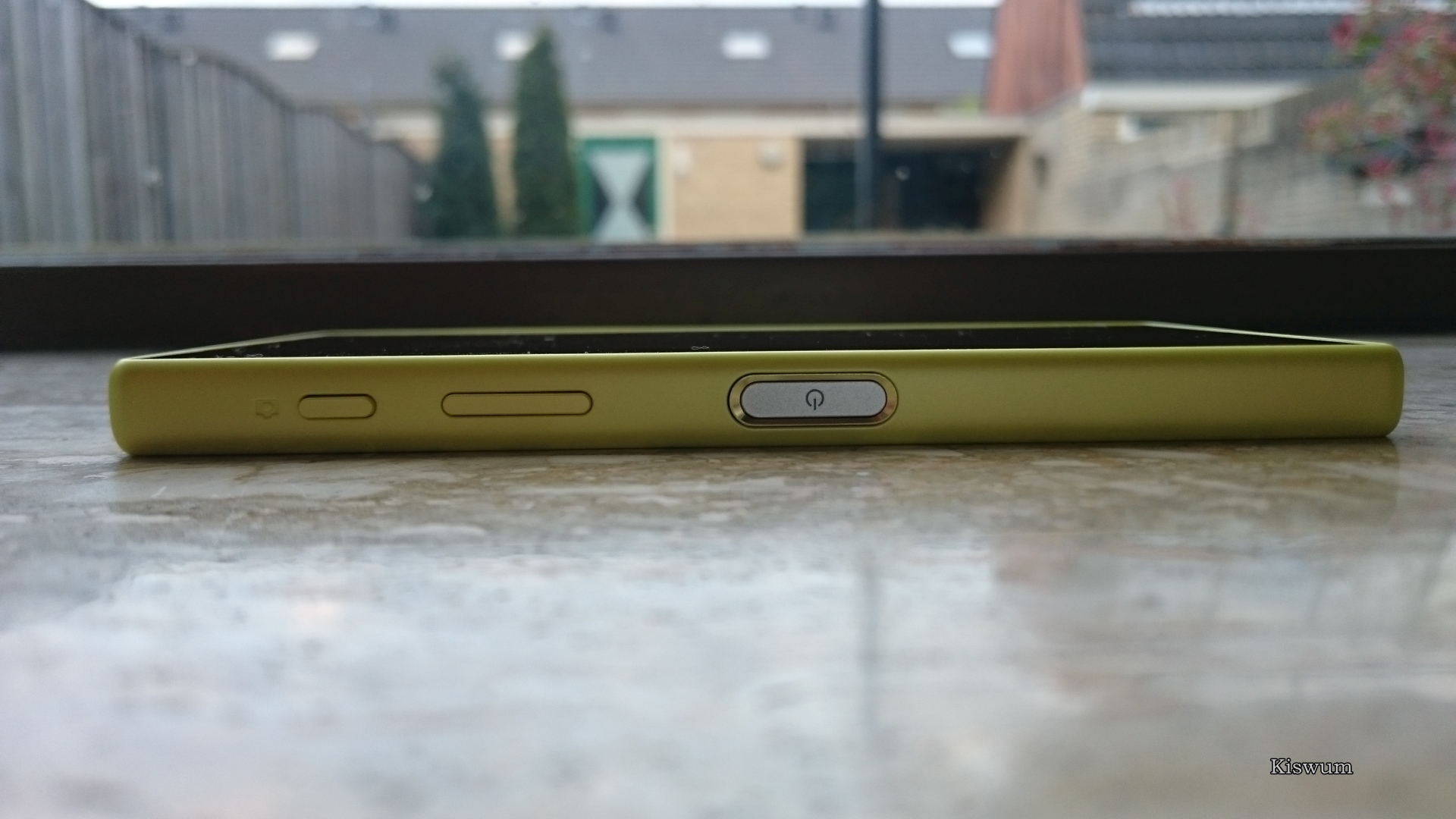 • De rechterkant is voorzien van een aan/uit knop met vingerafdrukscanner, volumeknop en een cameraknop.