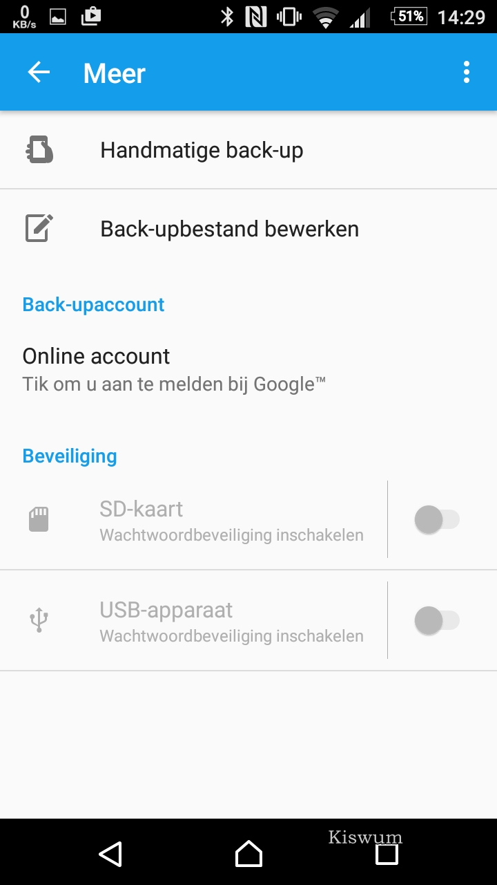 Xperia Companion tool is het mogelijk om een backup van 12 GB in slechts 5-10 minuten te maken. Voorheen duurde dit ongeveer 1 uur, waarbij de kans op foutmeldingen redelijk groot was. Het maken van backups kan ook vanaf de telefoon. De backups kunnen dan op een SD kaart, USB stick of Google account worden weggeschreven.