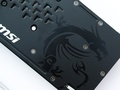 De kaart is voorzien van een stevige backplate, welke gemaakt is van zwart metaal, waarop het MSI Gaminglogo te zien is in een wat lichtere kleur. De kaart beschikt verder over de nodige verlichting, die je door middel van een stukje software kan instellen. Voor de mensen die niet zo houden van een kermis, kunnen ze ook gewoon uitgezet worden.